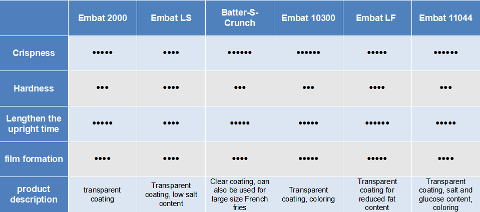 Our wide range of coating pr♥oducts is suitable for different processing proc≠esses and needs, including chips coating, tempura coating, nut coating, and customized coating solutions. They have the following ch>aracteristics: